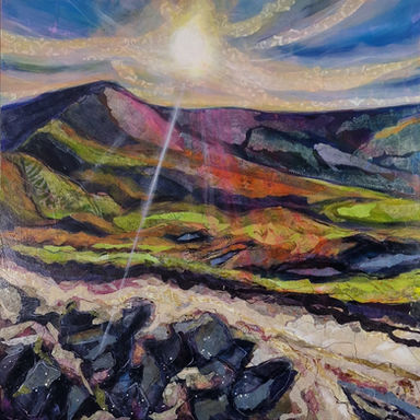 I am a creative tutor and mixed media landscape artist working from my little green ‘shedio’ in the garden. I use a wide variety of media, but particularly love the fun process of gelli printing to create original monotype prints and the numerous collage papers I layer in my paintings.